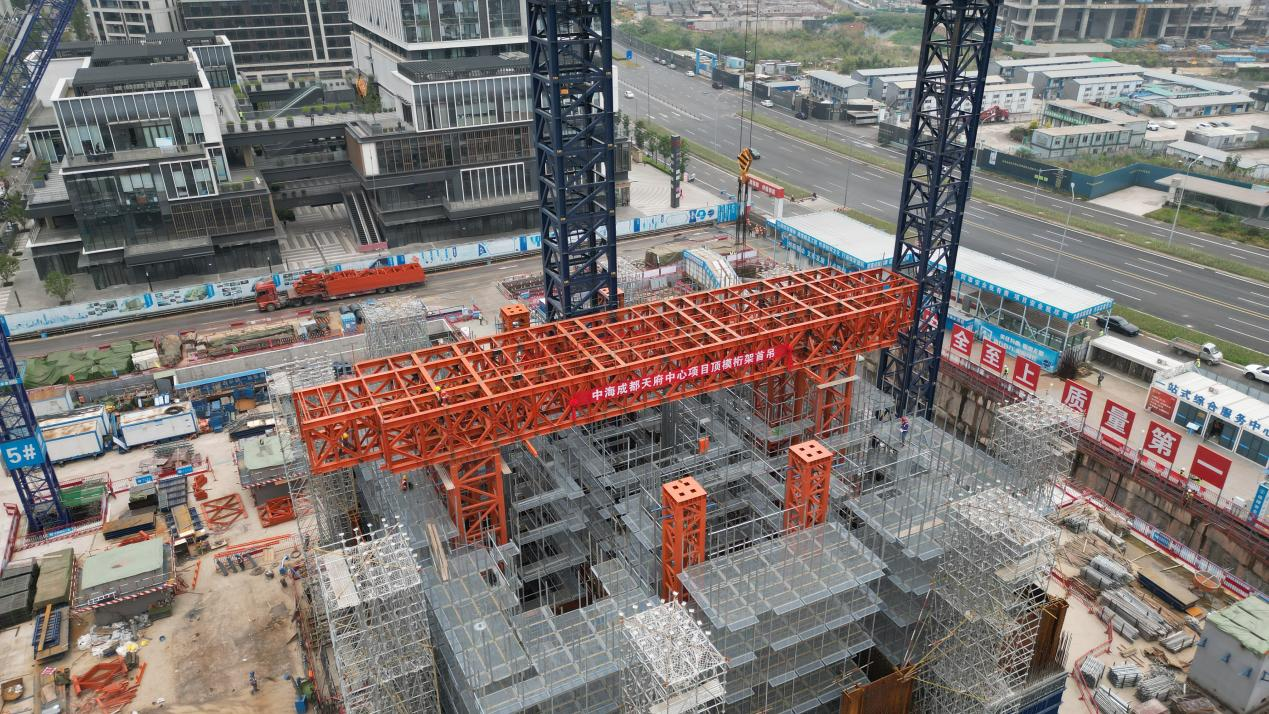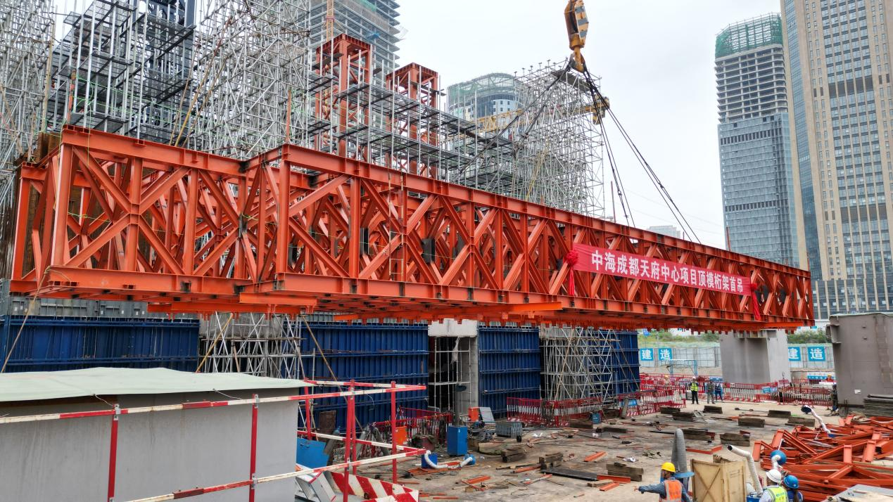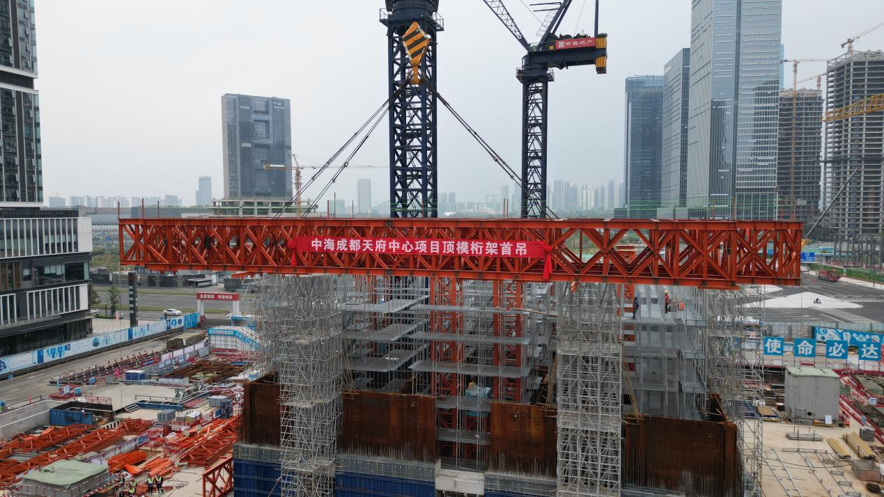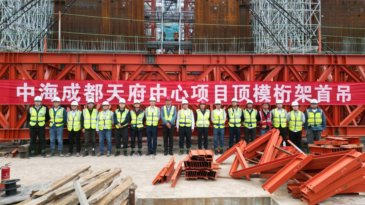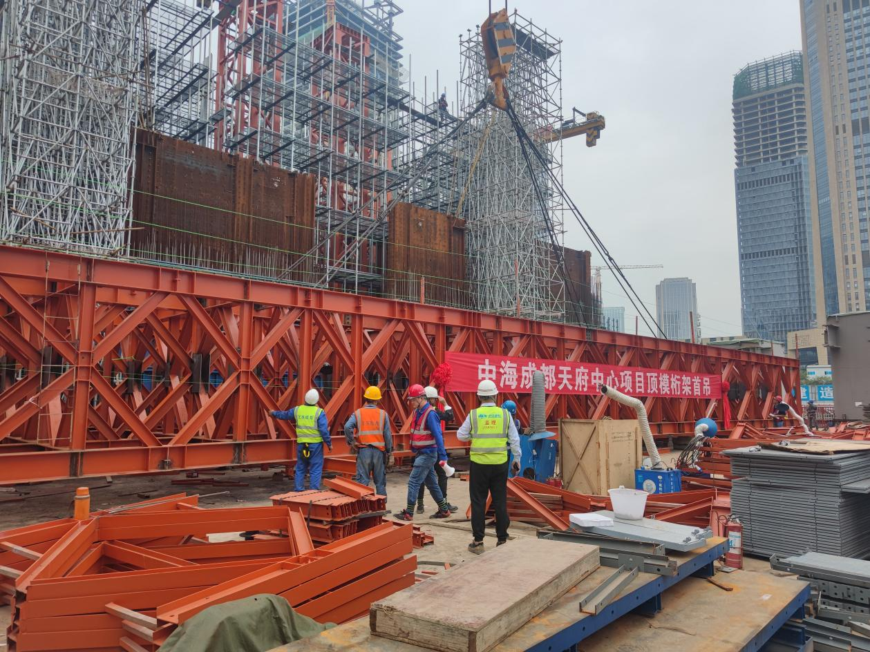 2023年10月30日15时00分,中海成都天府中心项目整体顶升钢平台主桁架通过验收,各项手续审批完成,吊装工作准备就绪,随着主桁架精准就位,标志着本项目正式进入整体顶升平台安装的重要阶段。