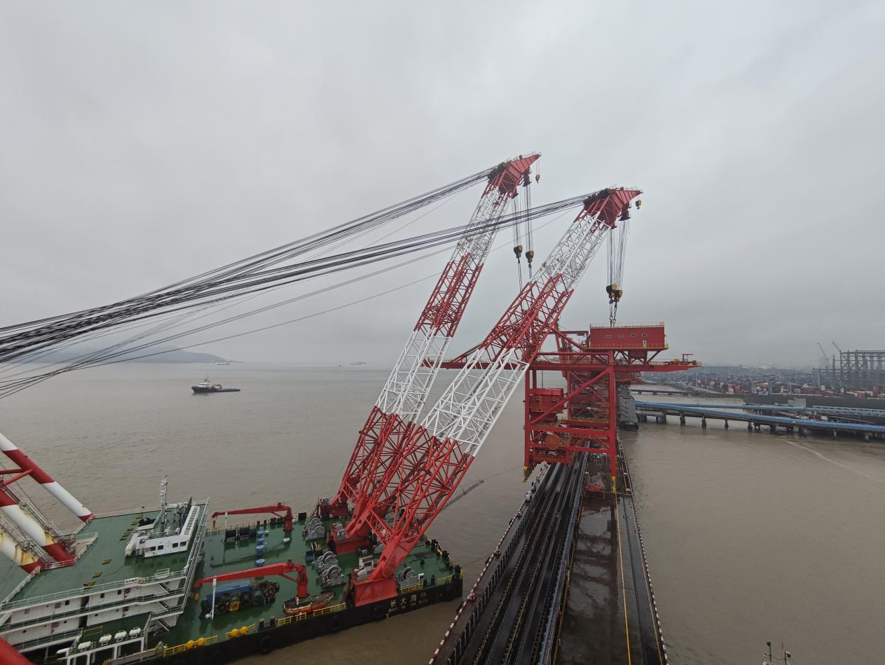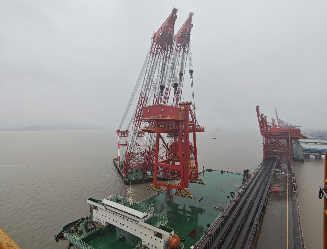 6月11日,随着浮吊将国能浙江北仑第一发电有限公司 1800T/h 桥式抓斗卸船机第二台设备吊装上岸,由远达国际全程监造的北仑电厂卸船机整机升级改造项目迎来重要里程碑——两台核心设备均成功完成跨海运输,标志着生产制作阶段圆满收官,正式开启整机调试及试投用阶段。