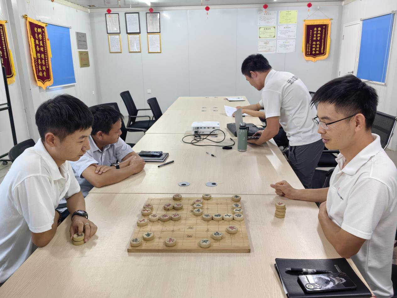 9月16日下午,项目部会议室悄然抽离平日的紧张忙碌,弥漫开一股新鲜而松弛的气息。红黑棋子错落有致,宛如钢筋丛林中的一方闲适风景。项目同事不约而同聚拢,目光聚焦于棋枰,一场随性的象棋对弈悠然铺展。顷刻间,会议室化身为临时棋馆,项目部的硬汉们暂搁安全帽,在楚河汉界间卸下重压,任智慧于松弛中自在流淌。